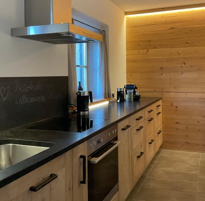 - Massivholz-Küche mit Granit-Arbeitsplatte